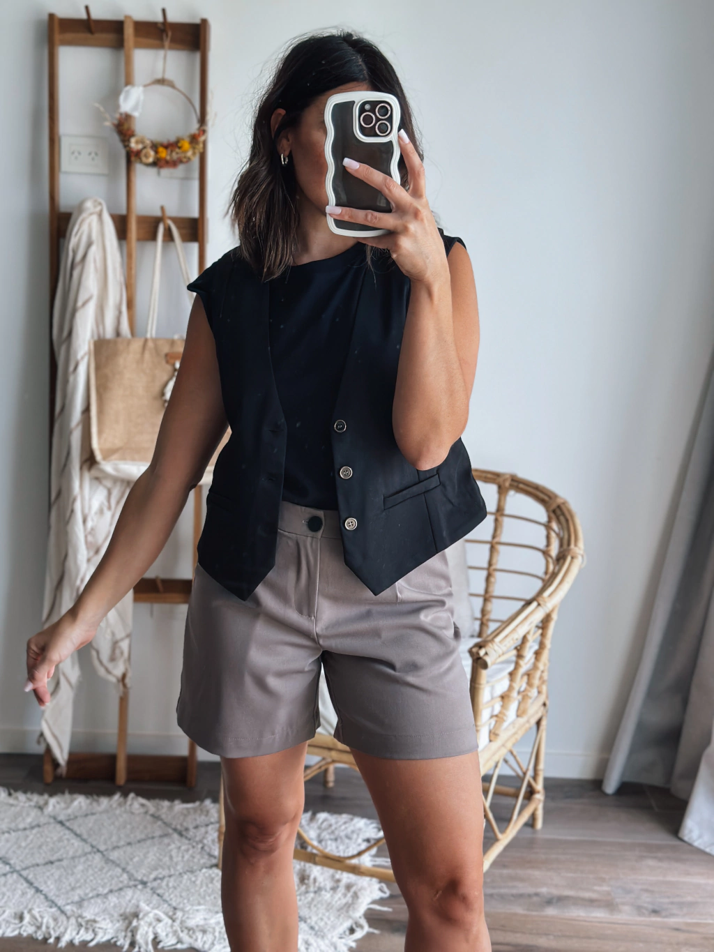 Bermuda tiro medio de calce recto con pinzas y presillas en cintura. Posee bolsillos laterales. Acceso mediante cierre y botón.Hecho en tela de lino.-Composición: 20% lino 30% viscosa 50% poliéster.