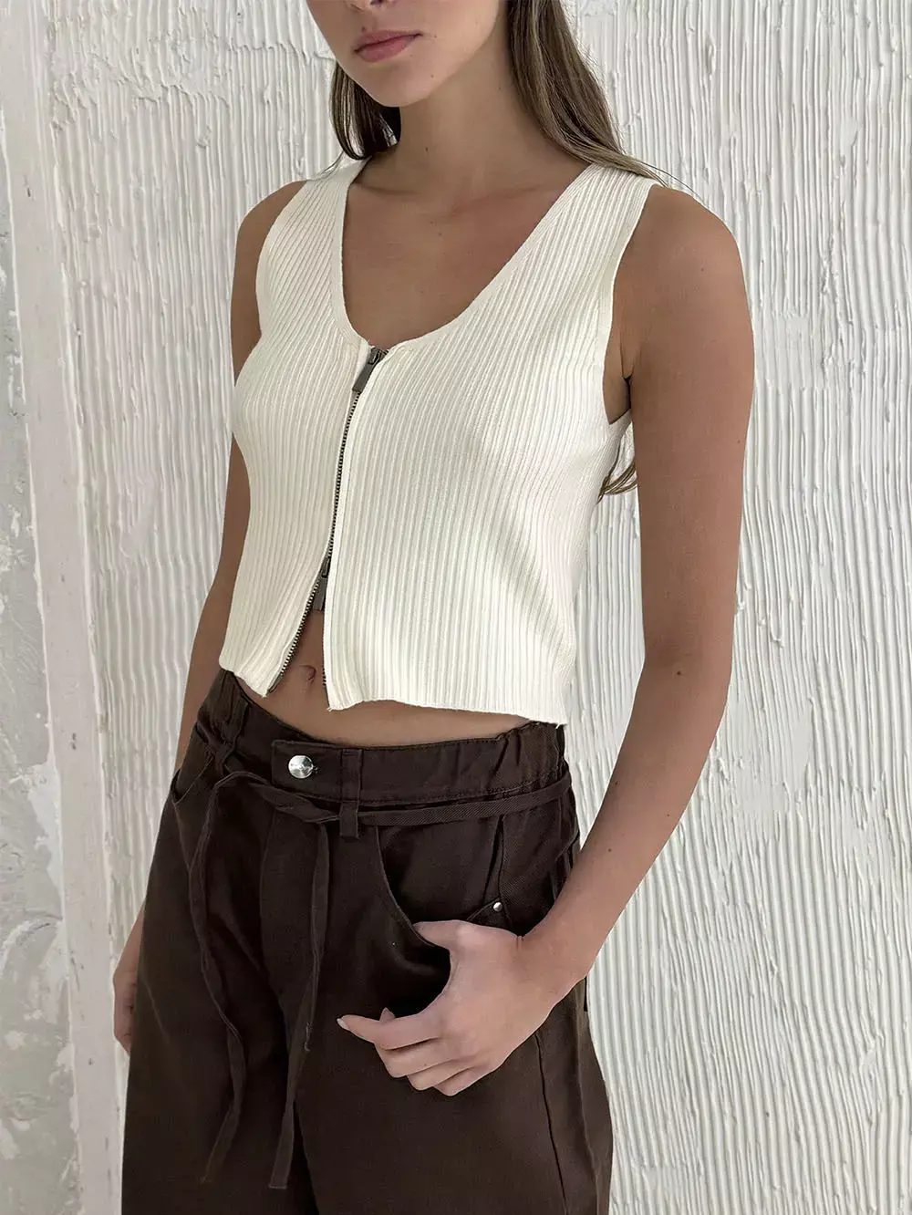 Top chaleco acanalado con escote V. Doble cierre frontal. Producto premium, importado y exclusivo de SKY.