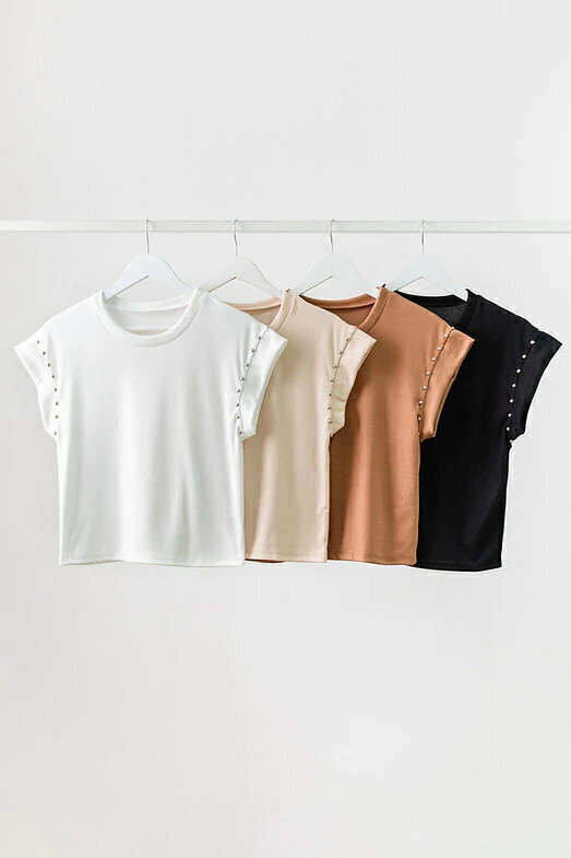 Musculosa de morley soft con elasticidad, cuello redondo y tachas en las mangas